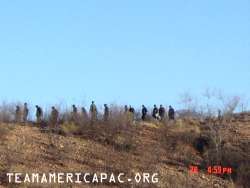 Here is a picture of Kathy watching a group of illegal aliens we encountered on a friend's ranch while awaiting the Border Patrol.